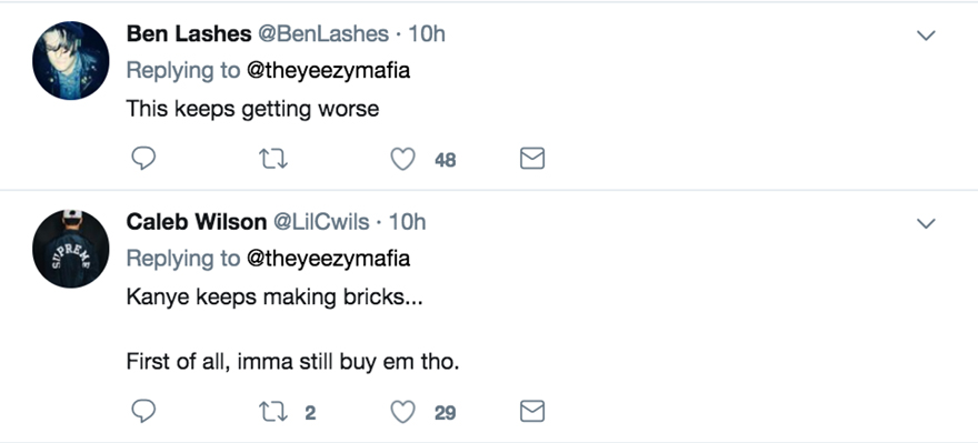 Although it has only been hours since the shoes were first unveiled online, the sneakers have already started receiving criticism from the sneakerhead community. Some say the shoes look like “bricks”, while others have declared it an indication that “Yeezys are going downhill” (comment threads below).