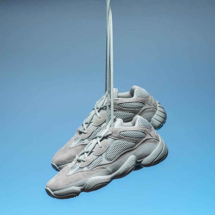 The tonal Salt Yeezy 500 comes in a light grey hue that covers the leather and suede while slight contrasts can be seen on the mesh and suede panels near the eyelets. This all sits atop the adiPrene cushioned sole that we have seen in all the past colorways.