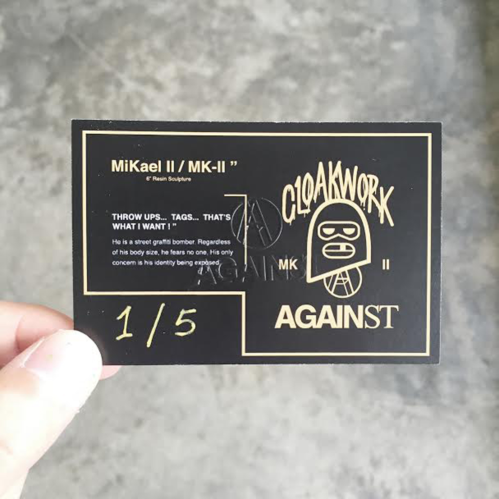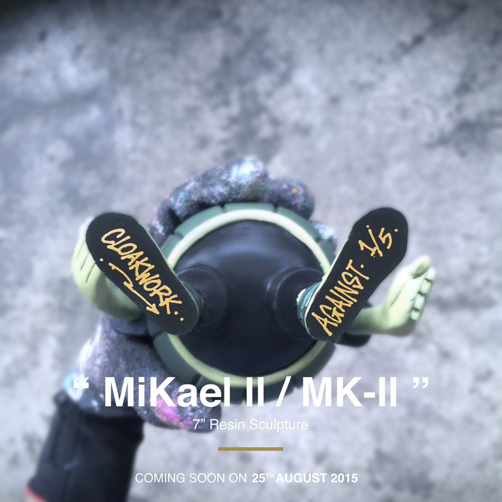 We’ve been following the work of Malaysia based artist, Cloakwork, for a while now. We collaborated with him on a t-shirt design (available online in white and black) for our first anniversary in 2014 and featured his sneaker box art in May this year. So it was of great interest to us when we learned about his latest creation – a resin sculpture called the MiKael II, or MK-II for short.