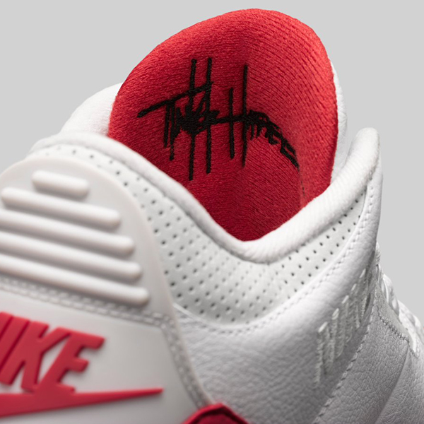The sneaker features premium tumbled leather uppers, dressed in the clean yet iconic University Red and white colors. But it gets better. The Air Jordan 3 Tinker “Air Max 1” will come with interchangeable Swooshes as well – one in elephant print, one in University Red, and another reflective version, on top of the default white. Further details include Tinker Hatfield’s signature on the back of the sneaker’s tongue.