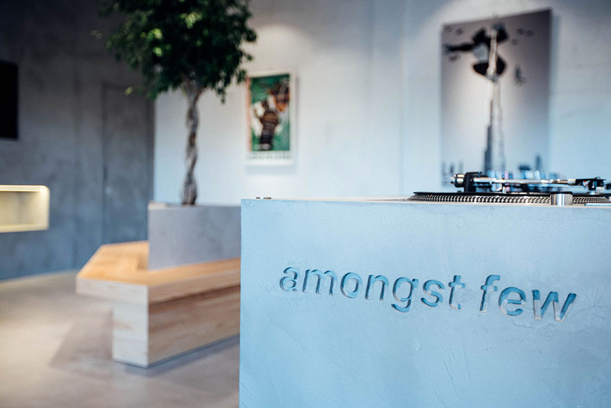 The result is a shop space incorporating clean lines and sweeping angles, using raw materials such as cement, steel and concrete that are offset by hints of natural ash wood and even a weeping fig tree. The overall aesthetics strike a fine balance between simplicity and detail, mirroring Amongst Few’s philosophy of suspending itself from the predicaments of the masses and devoting itself fully to the highest level of quality.