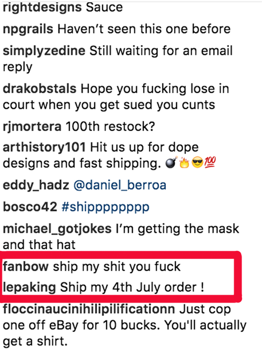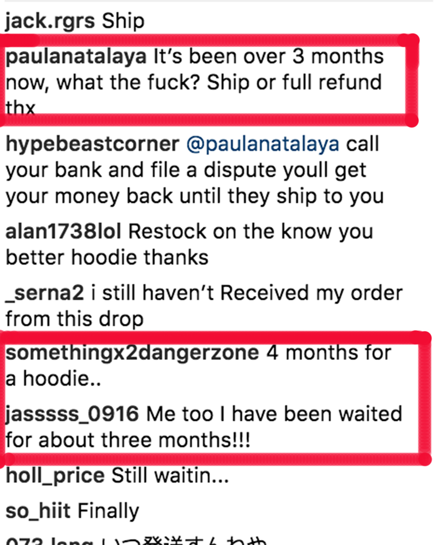 A quick scan of the fashion brand’s Instagram page shows complaints left by unhappy customers on multiple posts (see examples below), which neither ASSC nor founder Neek Lurk have responded to.