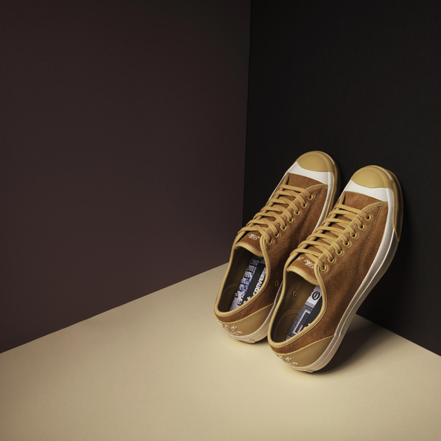 The collection utilizes the iconic Jack Purcell silhouette with a unique hair-on-hide upper. The shoes are available in two earthy colorways, black and caramel brown.
