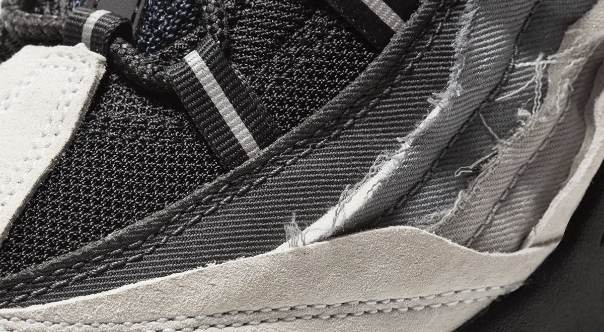 The sneaker from the Comme des Garçons Homme Plus collection comes in three grey-scale colorways – black, white and black/white/grey – that match the rest of the collection. The uppers of all three sneakers are structured to create a distressed vibe.