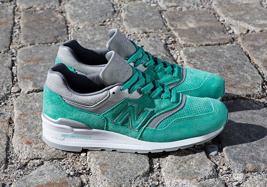 The New York Yankees is represented by the New Balance 997, taking on a mint-colored suede upper with grey accents that pay homage to the Statue of Liberty. The insoles feature a Cracker Jack design, inspired by the caramel-coated popcorn and peanut snack commonly sold at baseball games.