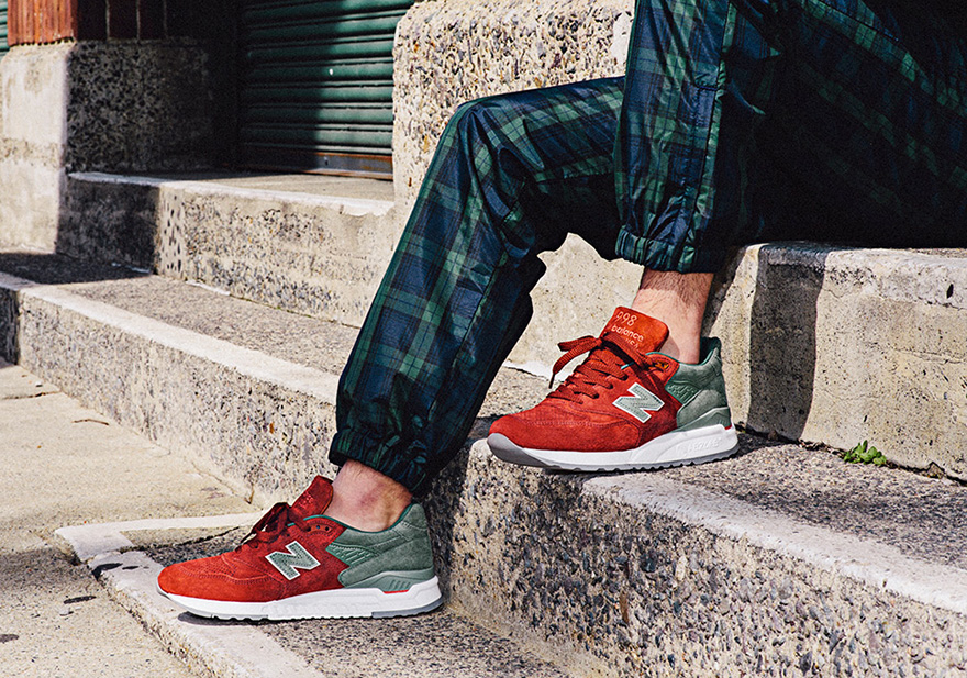On the other hand, the New Balance 998 embodies the heritage of the Boston Red Sox and Boston’s famous Yawkey Way street. This is done through rust red and dull green suede that occupies the front and rear halves of the sneaker upper respectively.