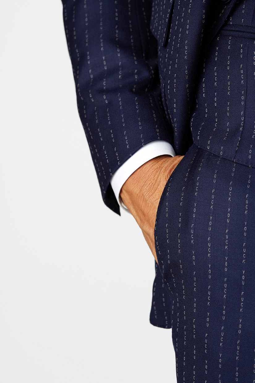 Like what McGregor wore to the LA press conference with Floyd Mayweather, the NSFW suit will be made from Super 130’s wool in navy twill with the explicit words presented in a vertical repeat. It features a French-facing construction and comes with either a single- or double-breasted vest.