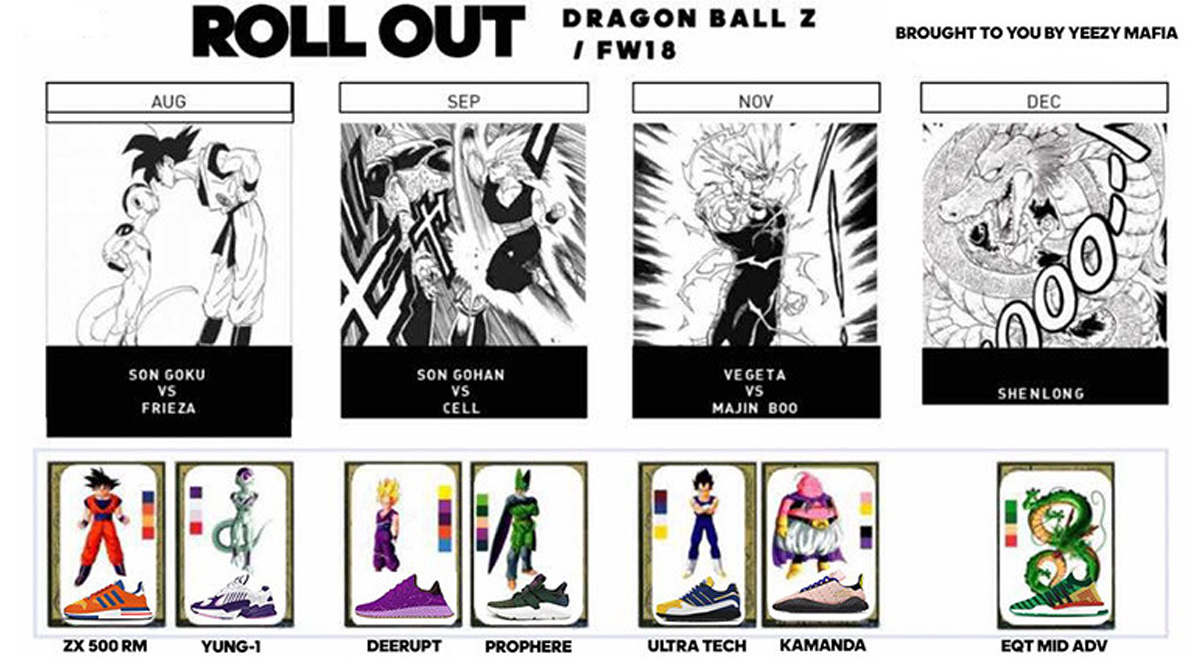 The information also suggests that the Dragon Ball Z x Adidas collection will roll out in four phases with releases in August, September, November, and December 2018.