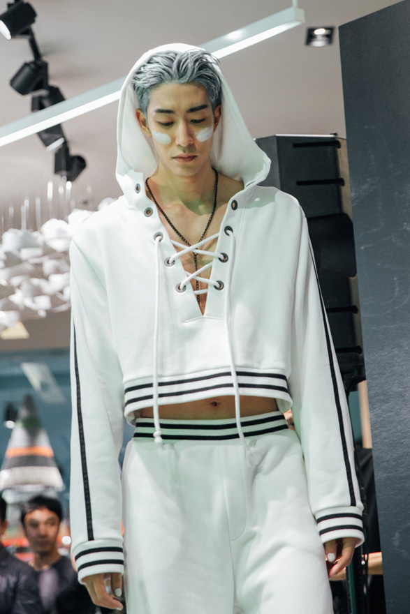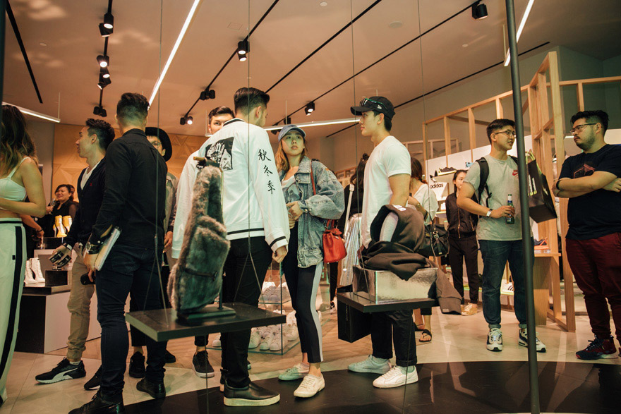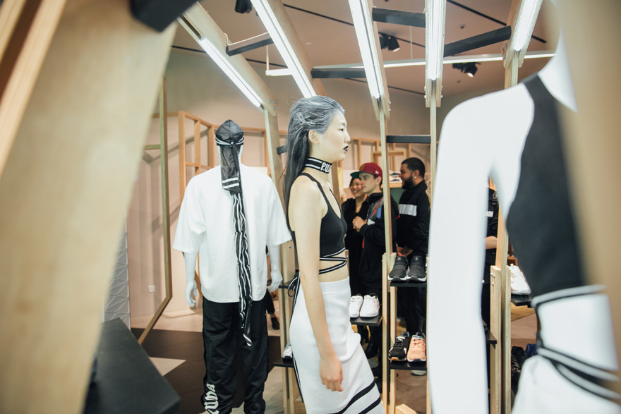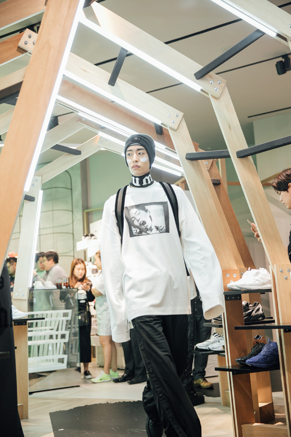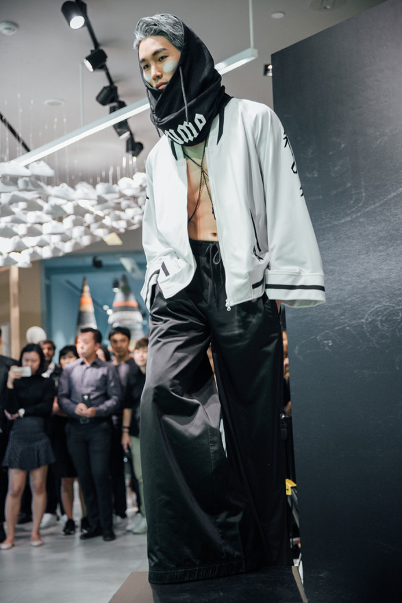 Unlike most other fashion shows, attendees at the launch were encouraged to mingle and share photo opportunities with the models. Guests also seized the chance to try on some of the never-seen-before pieces, among them the high-heeled sneakers and Japan-inspired track jackets.
