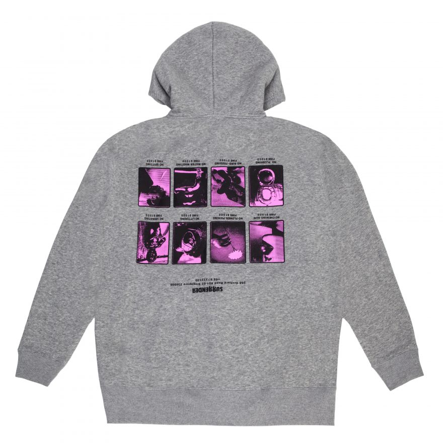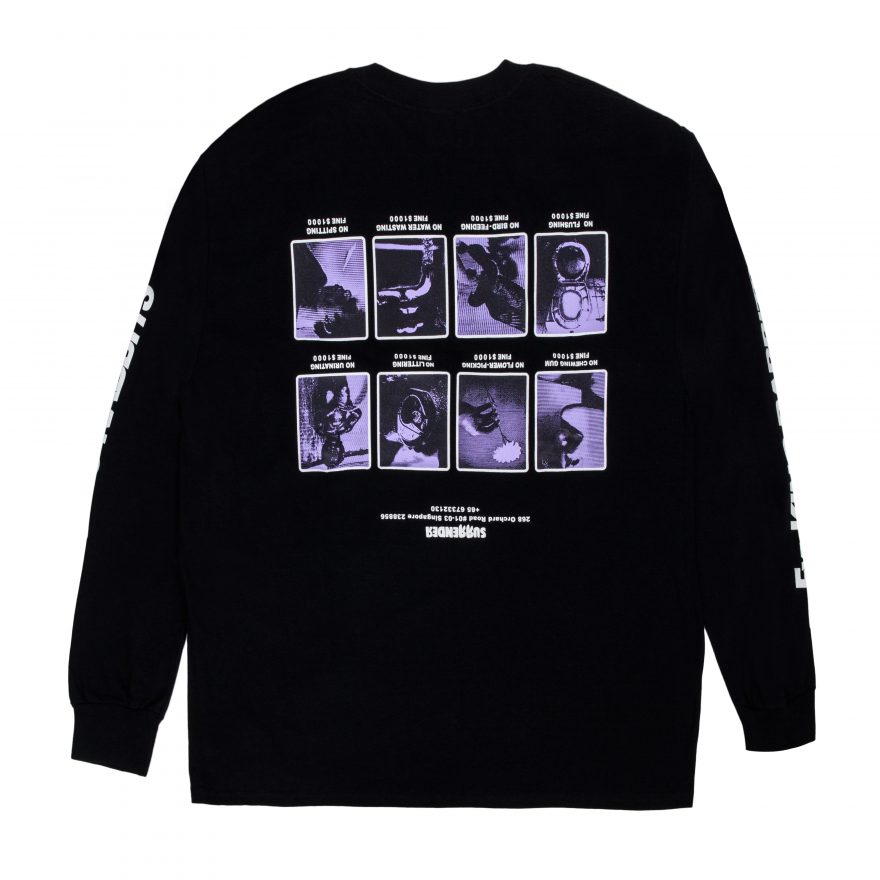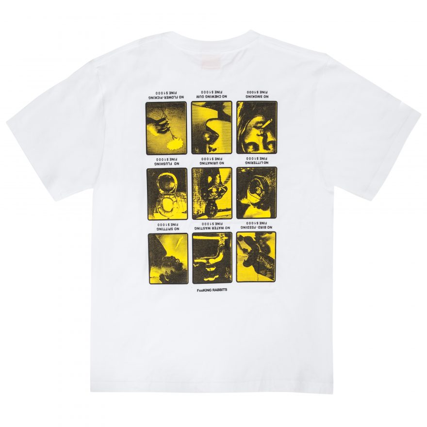 Taking inspiration from Singapore souvenir tees, #FR2 x Surrender take the actions that you can get fined for in Singapore and flip the graphics upside down.