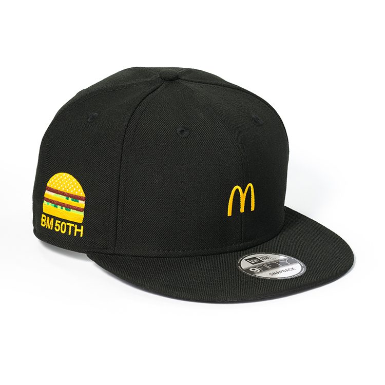 The New Era collaboration cap will feature the McDonald’s logo embroidered on the front, a Big Mac motif to the right and a New Era logo on the left.
