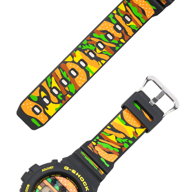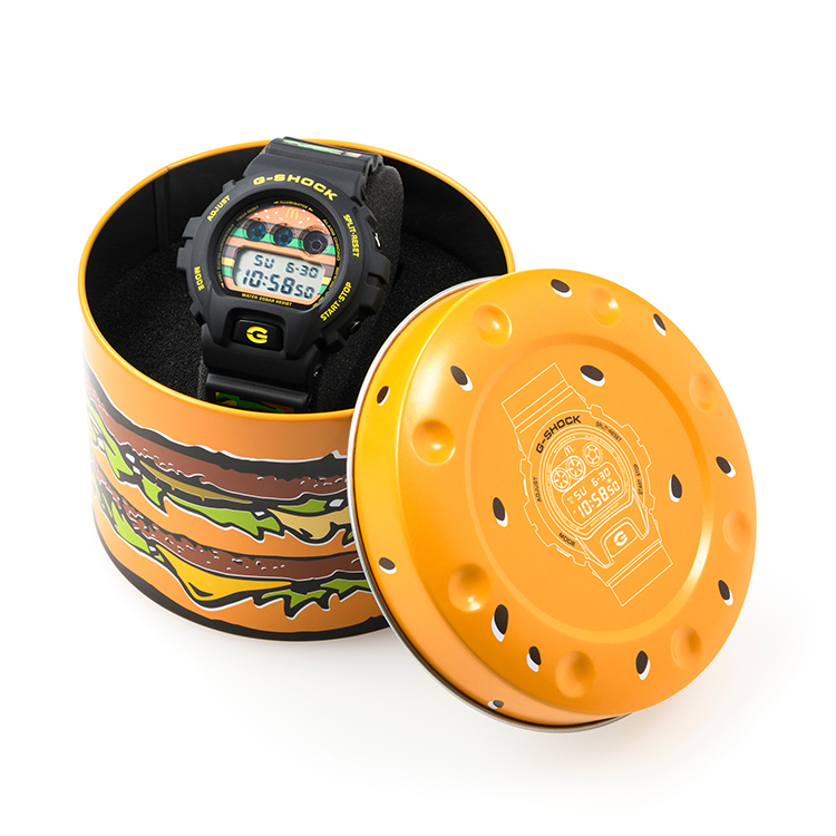 The G-SHOCK exclusive watch, packaged within a limited edition Big Mac shaped tin, will feature a motif of the classic burger on the dial and also as a pattern of the Big Mac all along the strap.