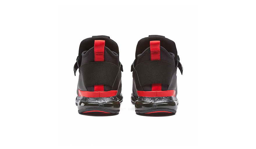 The PUMA Cell Mid comes in black with pops of red and white. It features a mix of neoprene, mesh and leather, with an elastic strap at the forefoot and plastic buckle at the midfoot offering a secure fit. A speckled and glossy black midsole completes its multi-layered and futuristic appearance.