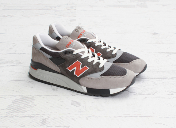 Marking the start of spring, New Balance returns with a fresh colorway for one of its most popular designs. The New Balance M998GGO features seven different shades of grey and black, white and striking orange accents. The Made-in-USA retro runners also features quality suede and mesh uppers seated atop a New Balance’s ABZORB mid-sole and non-marking rubber outsoles.