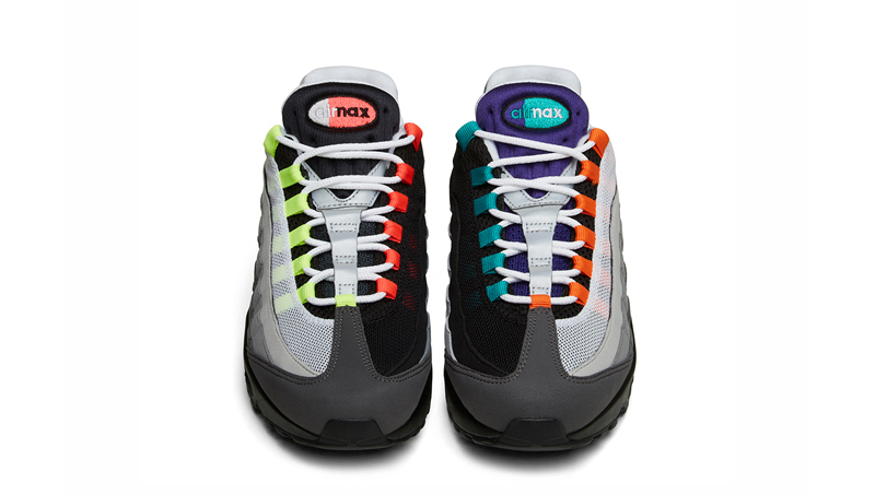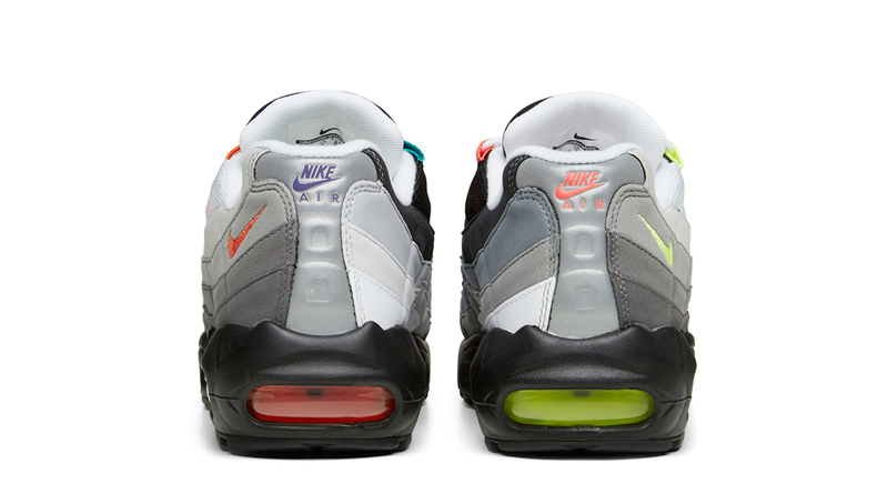 Likewise, the Air Max 95 OG “Greedy” puts together various colorways from previous releases such as the “Neon”, “Orange Blaze”, “Grape” and “Comet”. Each colorway occupies one side of the shoe, giving it a mismatched yet unique look.