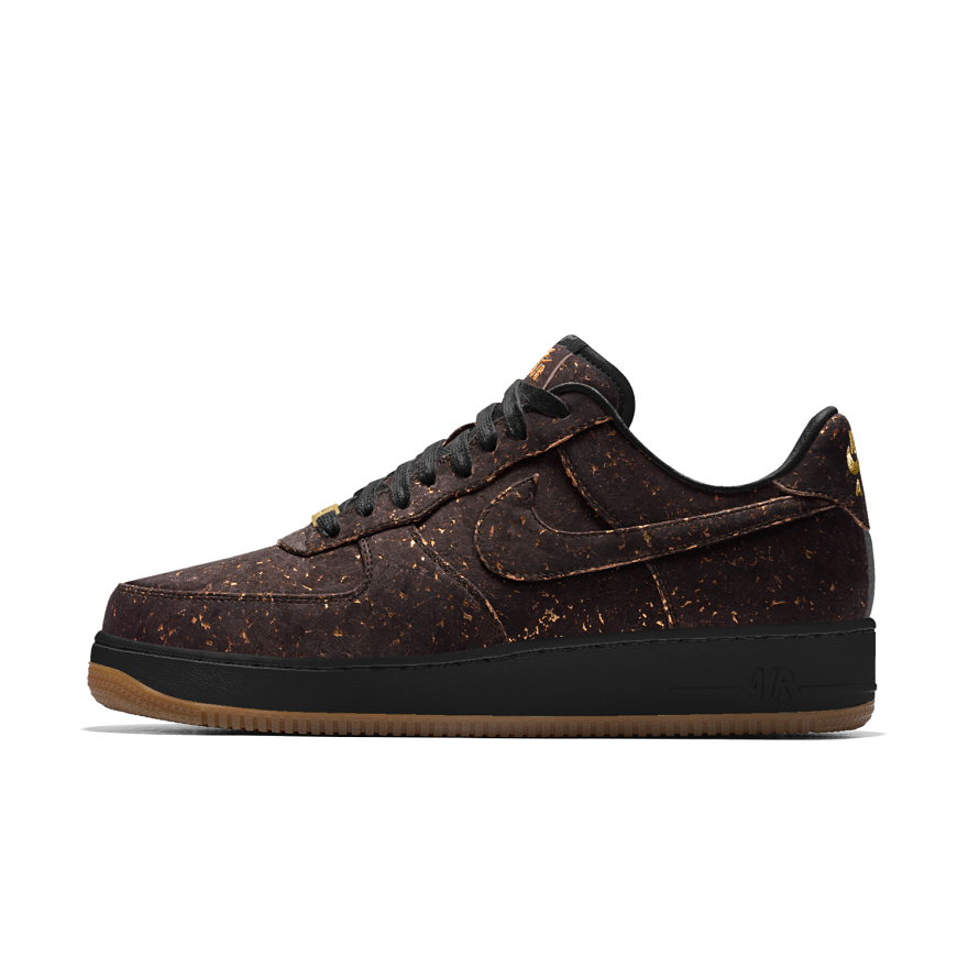 The commemorative Nike Airforce 1 comes with metallic gold details and premium black-cork options. Available in high, mid, low models, they are also customizable via NikeiD.