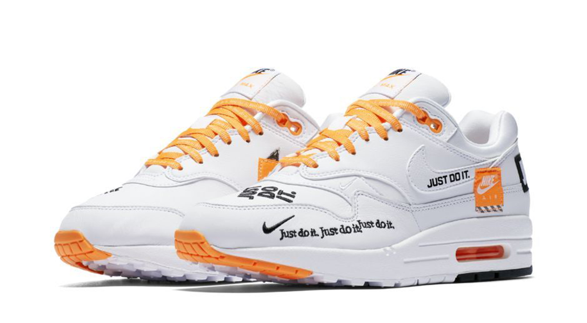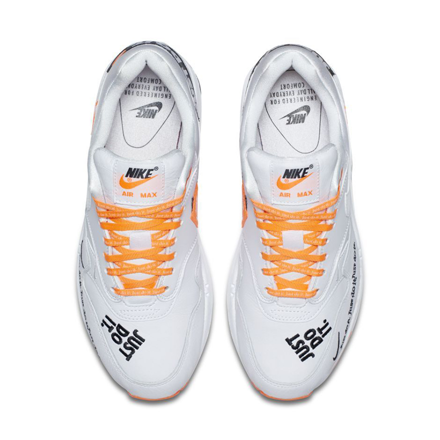 The other Air Max 1 iteration will be a women’s exclusive that comes in a white base . that’s adorned with the iconic Nike swoosh and tagline in black. The sneaker will also feature hints of vibrant orange on its laces, as logos are plastered throughout the shoe as well.