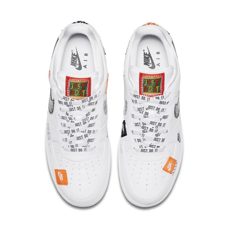 The Air Force 1 will come in its signature white colorway, but clearly, it will look like nothing we’ve seen before. On the heel, “Just Do It’ replaces of the usual “Nike Air”, colored in orange on the left pair and black on the other. But it doesn’t stop there. The signature tagline is splayed across the bottom of the heel as well. It also appears on the laces, lace tips, tongue flap and even on either side of the Swoosh.