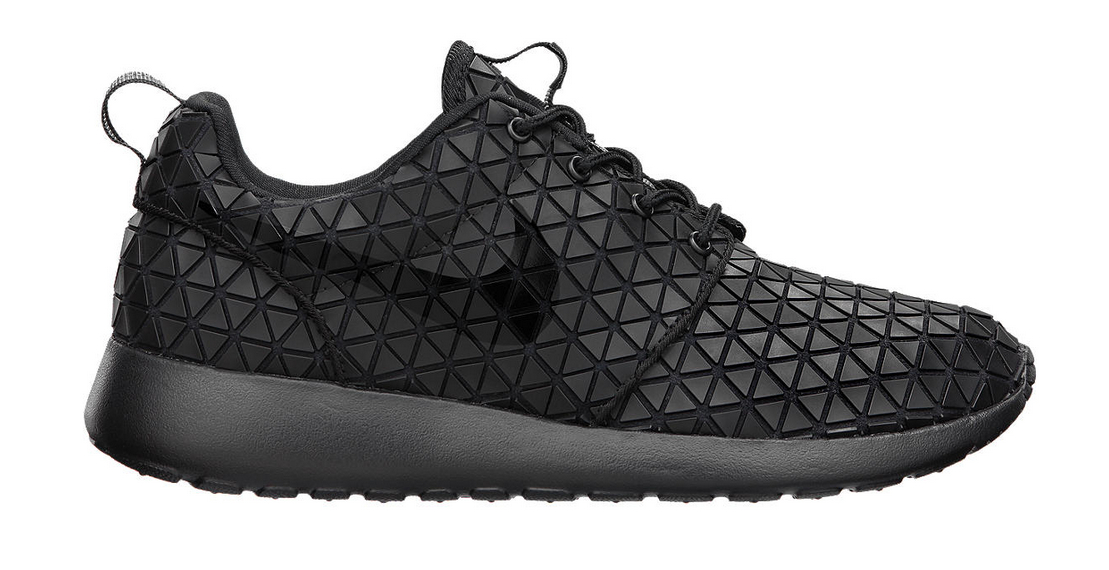 Rather than releasing the Roshe Run in a different colorway, Nike has taken things to a whole new level with the new Roshe Run “Metric”. Exclusively for women, the black-on-black Roshe features a unique geometric panelled upper, creating a futuristic twist to the minimalist sneaker. Additional details include a tonal swoosh and metallic silver pulls on the tongue and heel. The shoe is finished off with a black sole and Nike’s Solarsoft cushioning.