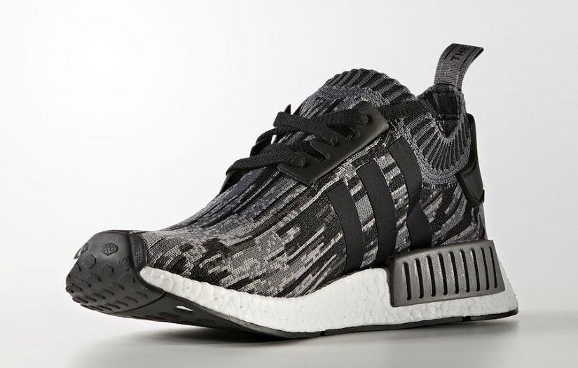 Unlike the “Glitch” pattern that was released in July, this iteration features a darker print that’s reminiscent of urban camouflage. Using a Core Black and Gray Three color scheme, the NMD R1 “Glitch Camo” (see above) features a full Primeknit upper with white Boost midsole and black rubber outsole.