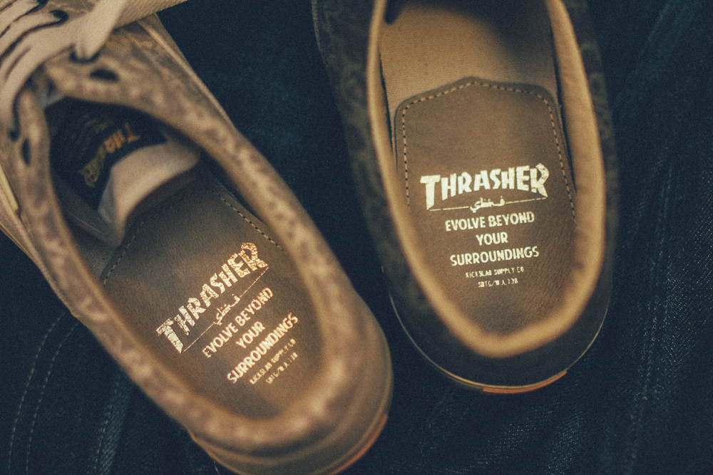 What: Thrasher x SBTG x Kickslab “Decker” sneakers