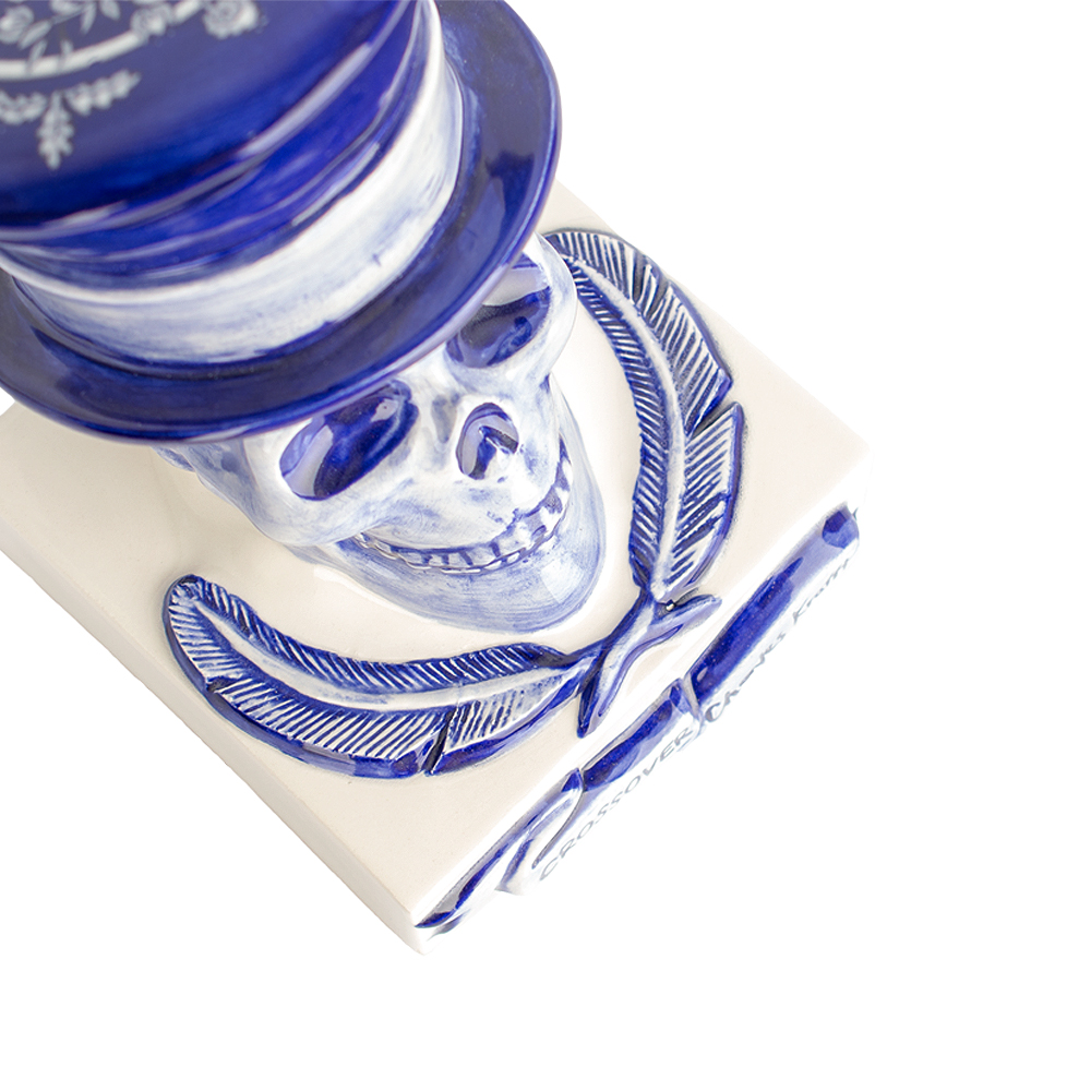 Why: It’s like a Ming Dynasty blue-and-white porcelain piece gone wrong; it’s subversive and that’s why we like it. Inspired by Crossover’s fedora wearing skull logo, infused with Krafft’s signature floral motifs, this porcelain piece makes a great statement piece.