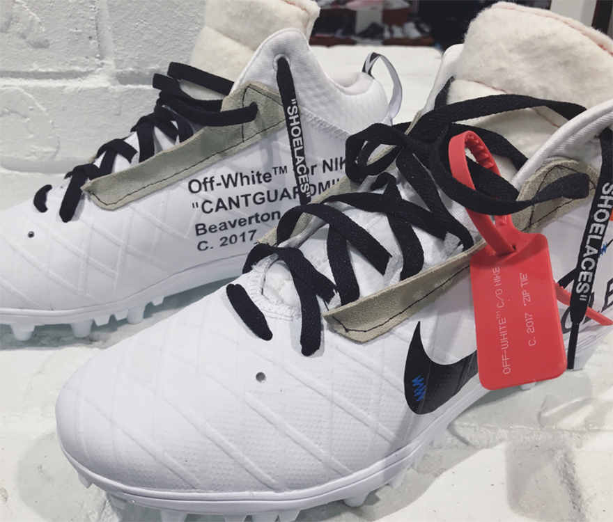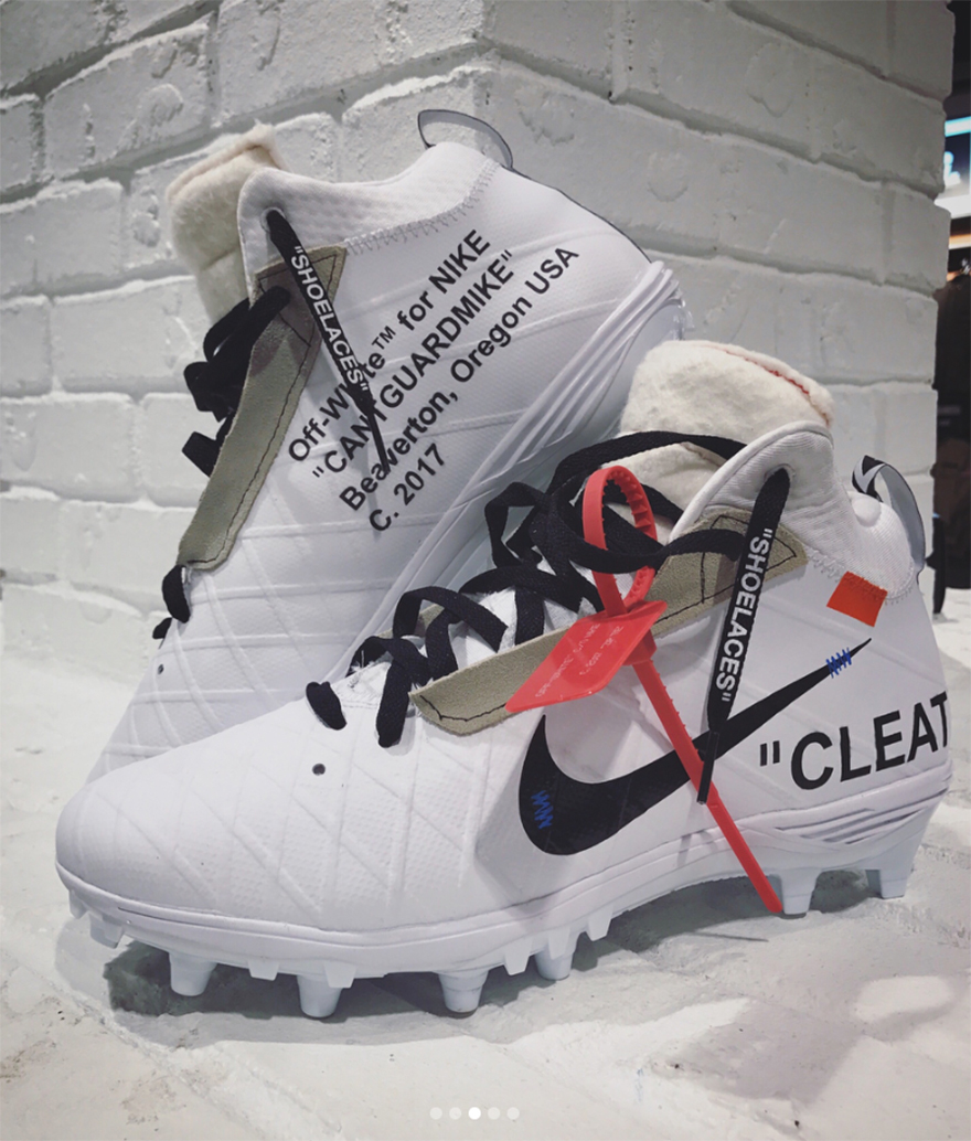 The customized cleats bear striking resemblance to the design of Virgil Abloh’s Off-White x Nike “The Ten” series.