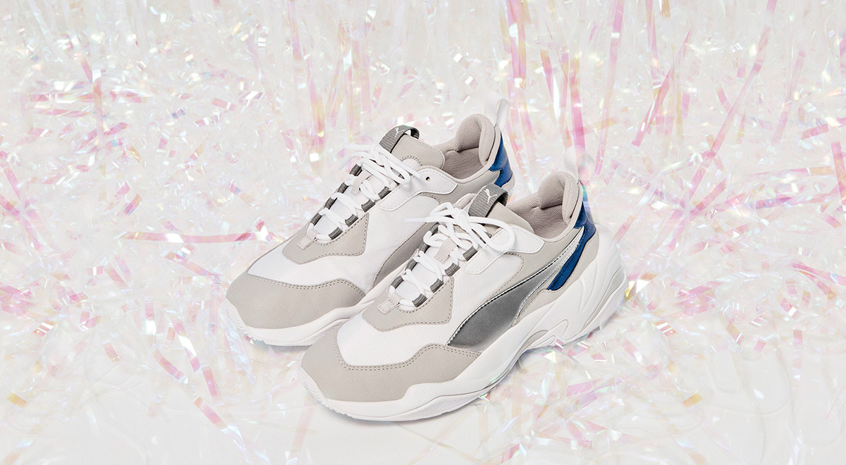 The PUMA Thunder Electric was first released earlier on June 21, in men’s sizing. According to Highsnobiety, the shoes were named the Thunder Electric as the design aims to “reflect the electrifying power of lightning” – elements which can be seen on the sneaker’s metallic design.