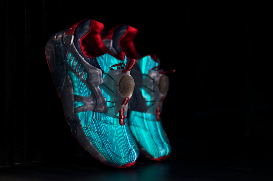 Chapter II takes inspiration from the founding of modern Singapore by the British, and its economic growth as a strategic port of call. Referencing the surrounding seas, the sneaker has a gradient blue glow-in-the-dark upper, a translucent PUMA Disc knob, icy blue cage panels and a reflective speckled midsole.
