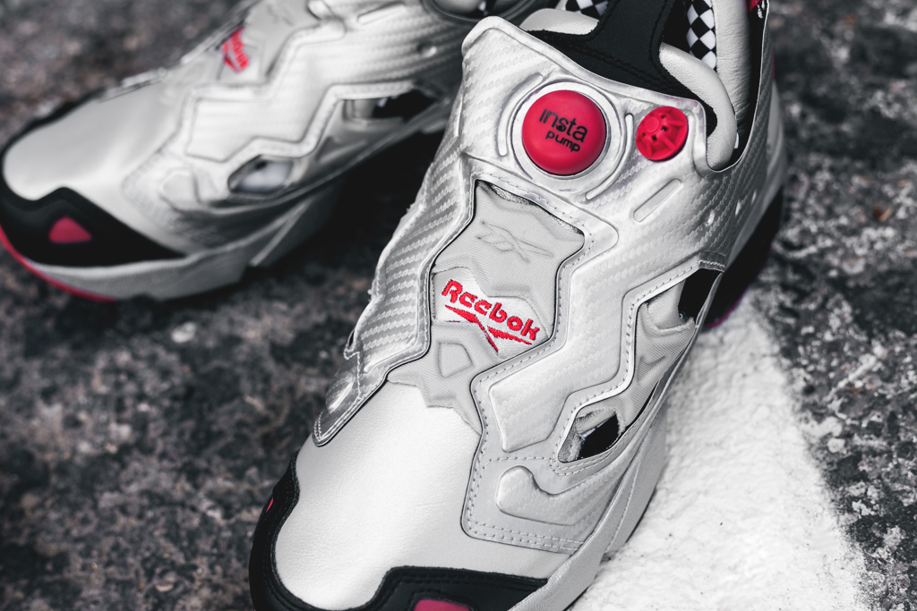 Each shoe is lined with the signature checkered print from F1 races. Available in three metallic colorways – black, red and silver- each pair is built with soft leather uppers shaded in faux carbon fiber put together in Reebok’s classic Pump Fury construction.