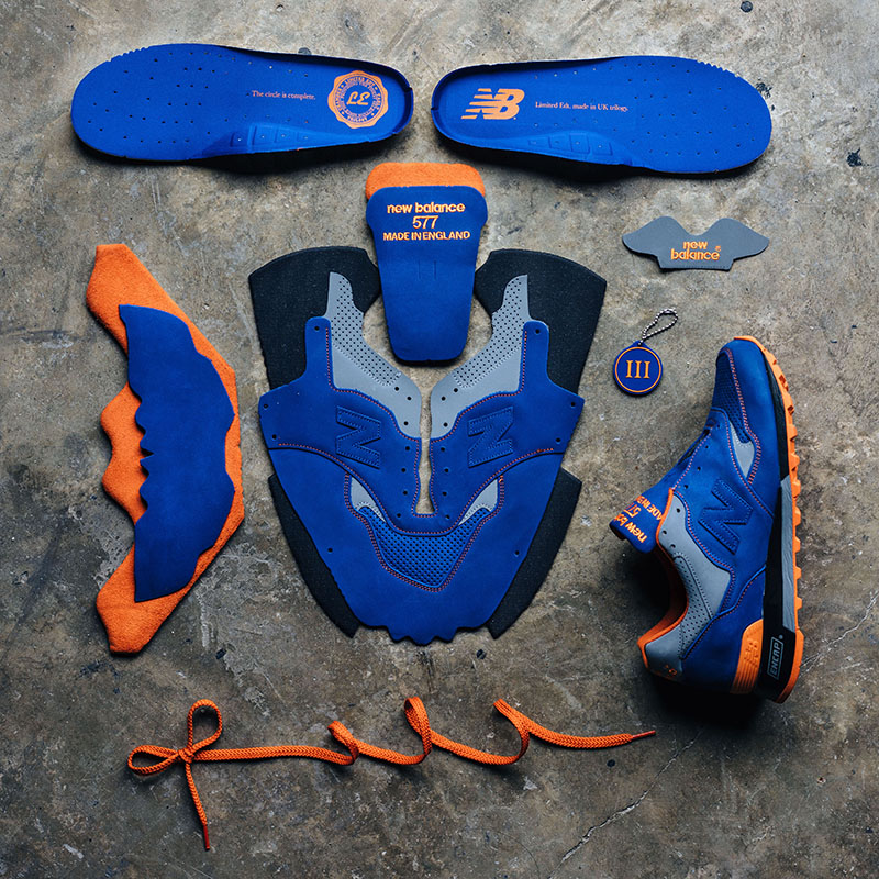 The Limited Edt M577LEV is the third and final collaboration between Singapore sneaker store Limited Edt and New Balance on the Made in England M577 series. Made in New Balance’s legendary Flimby factory, the M577LEV features a mix of nubuck leather and reflective panels. Royal blue and flash orange colors, reminiscent of Limited Edt Queensway’s interior décor and logo, adorn the sneaker.