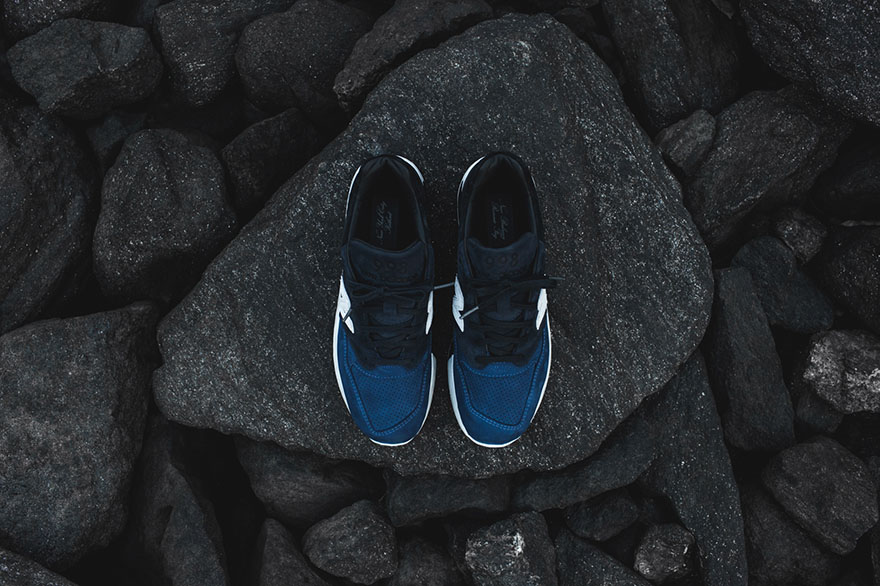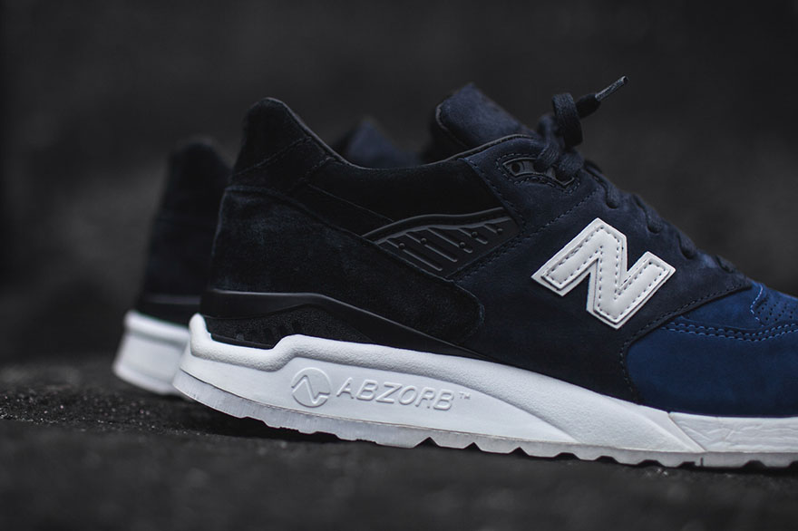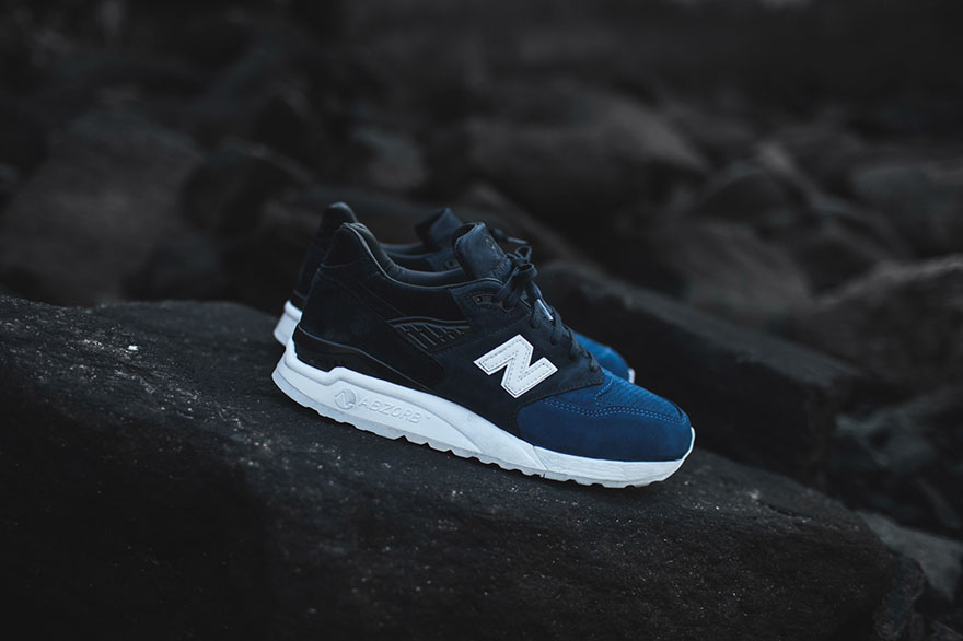For the uninformed, the Ronnie Fieg x New Balance 998 is crafted with perforated tonal blue nubuck on the toe area, dark navy nubuck on the mid-section and black pigskin suede on the heel. A nubuck tongue, leather lining and reflective New Balance logo complement the overall gradient appearance of this sneaker, while the white midsole helps it retain a clean look.