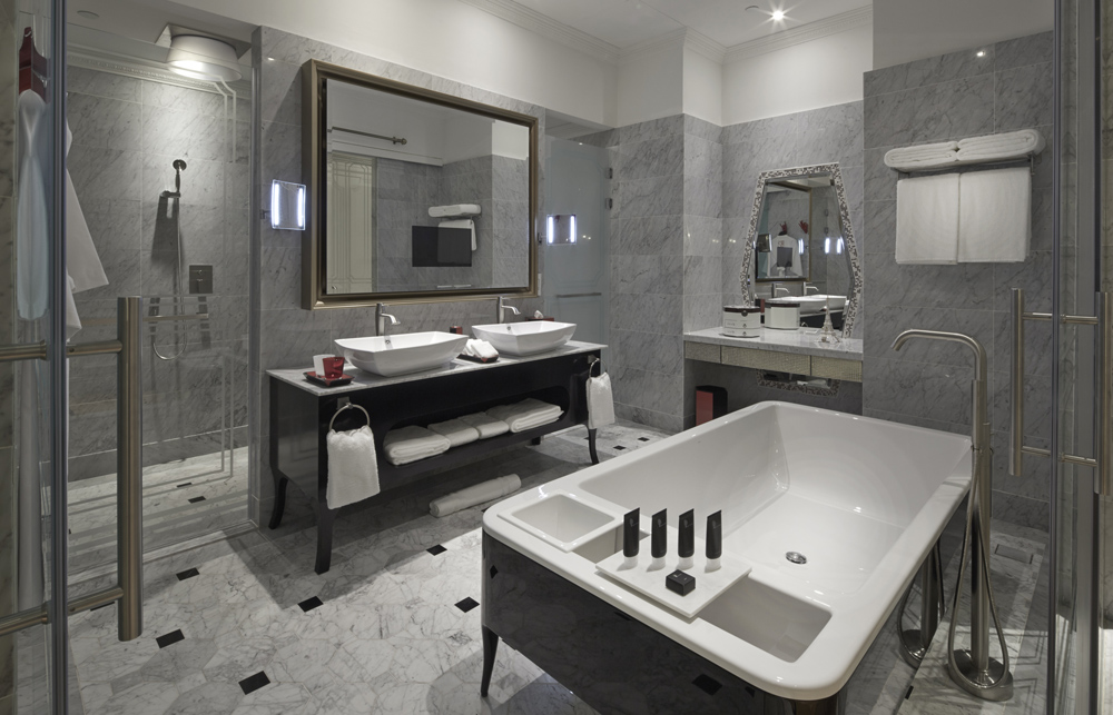 Other Kaiser commissioned objects include the BooKube, DoorKnockers on the So Heritage Wing and the bespoke bathrobe featuring the red and white ‘The Lion’s Seal’ embroider. An intimate La BibiloteK decked with a collection of books, curated by Lagerfeld himself, sits beside the Xperience Bar. Of course, the front-of-house ambassadors are dressed in garde-robe from the fashion designer’s namesake collection, KARL LAGERFELD.