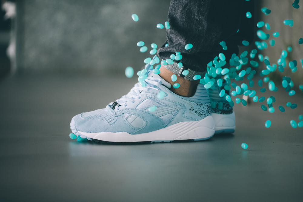 The first of three drops this year as part of PUMA’s Adventurer Pack, the Solebox x PUMA XS850 was inspired by Solebox founder Hikmet Sugoer’s adventures in the United States. Besides picking up rare sneakers to sell in his Berlin-based sneaker store, Hikmet also developed an addiction to jellybeans, in particular the Berry Blue flavor from Jelly Belly.
