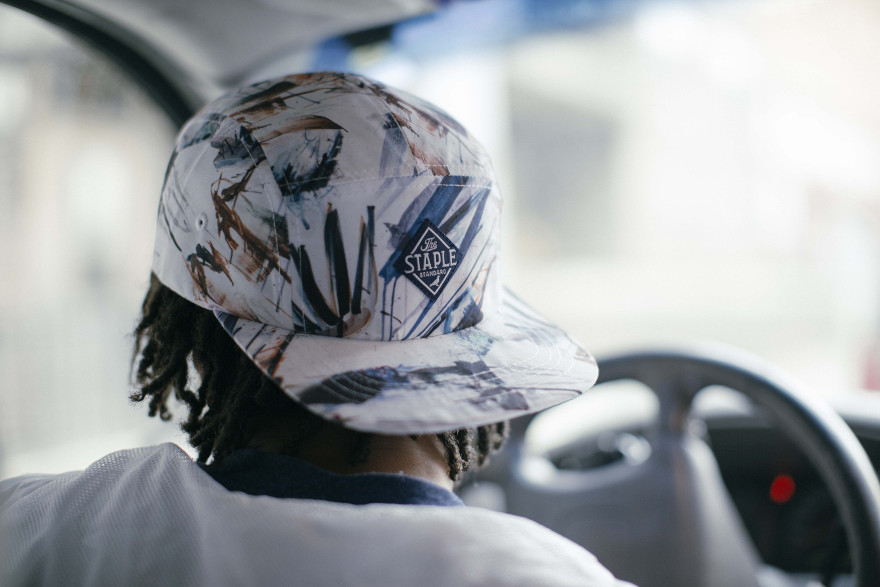 The Spring 2014 delivery also features two collaborations, the first with contemporary British artist Dave White whose work involves pop culture and emotive issues. White pioneered the Sneaker Art movement in 2002 and his collaboration with Staple sees his stylized brush strokes on the iconic Staple pigeon.