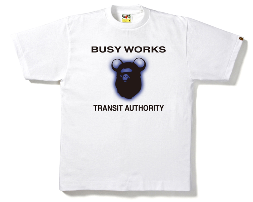 The iconic BAPE head logo will come dressed in ‘bear ears’. The words “Busy Works” and “Transit Authority” can be seen emblazoned across the front of both the t-shirt and the toy, while the designer’s insignia adorns the back of both the toy and shirt.