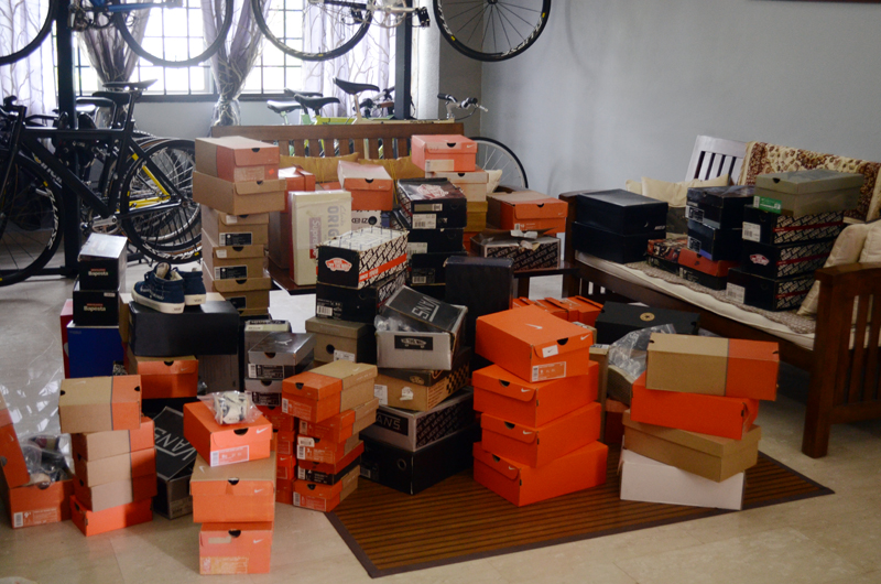 I have about 215 pairs currently sitting in my room and in the storeroom. I was in the midst of clearing all the old expired shoes when you guys came knocking.