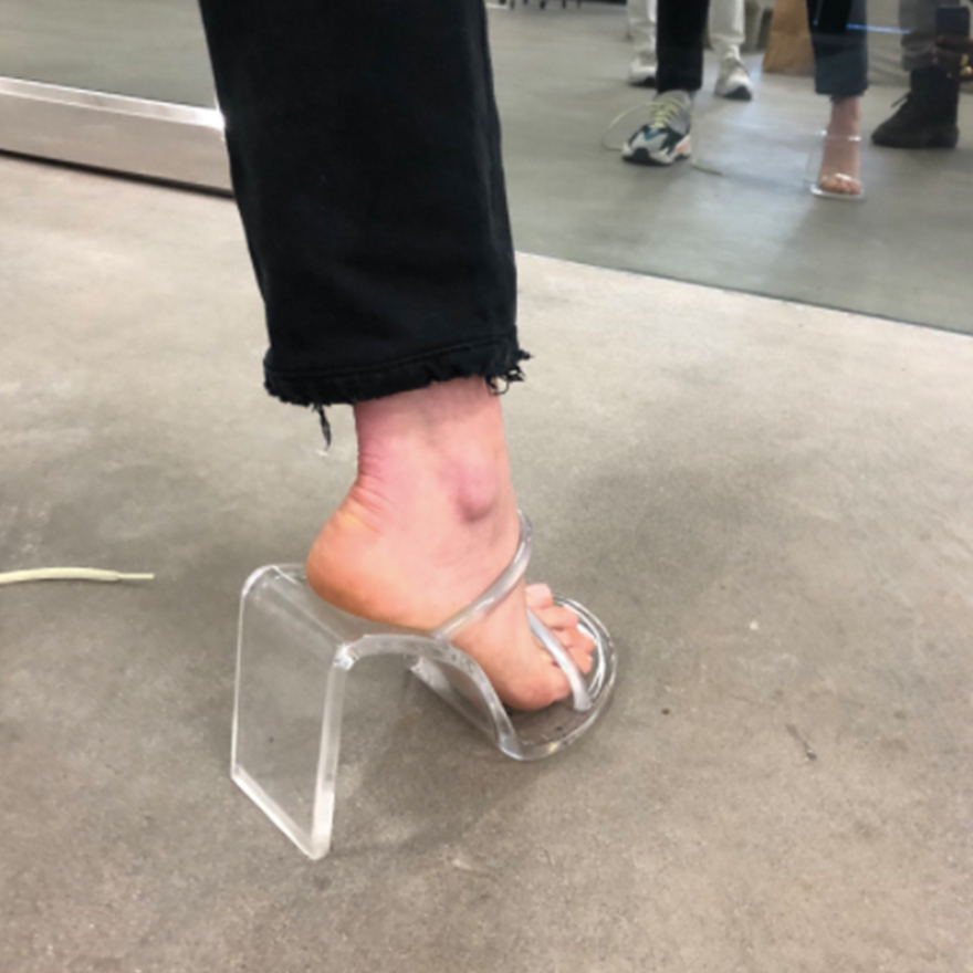 Other than the unreleased Yeezy sneakers, the collection also includes slides and what looks to be plastic perspex heels.