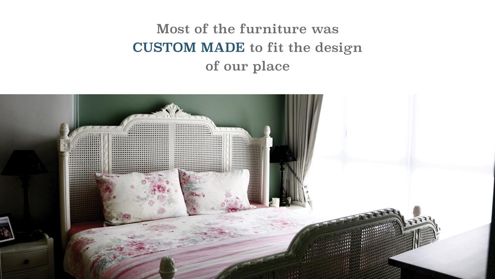 And the budget was stretched indeed – most of the furniture in their home was custom made and some of the paint colors, particularly those used in the bedrooms, can only be obtained from England! It took them one year to design, source and purchase the items and two months to renovate.